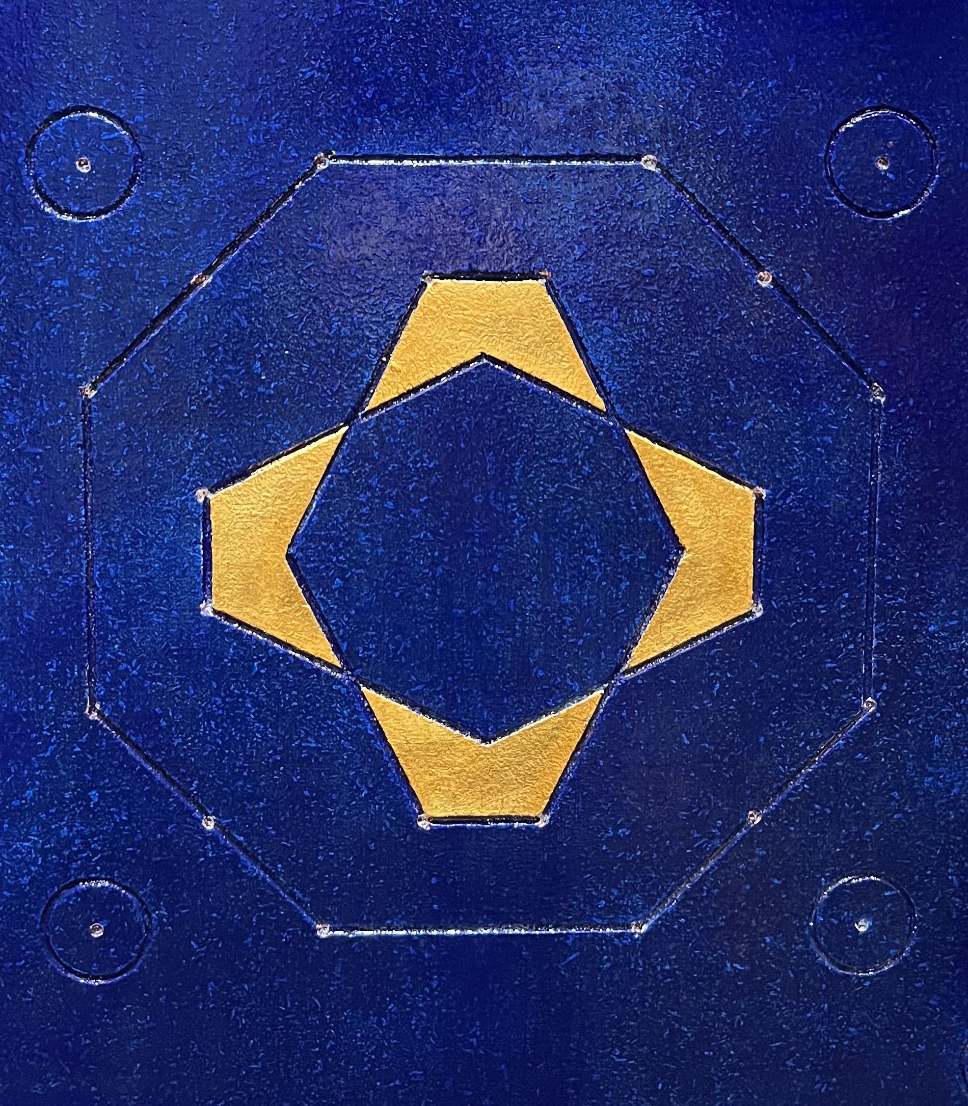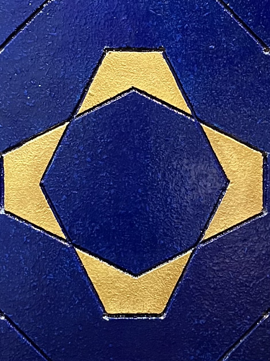 Technique / Materiaux | Feuilles d'Or Véritable, Gravure en Bois, Peinture Acrylique, Vernis Brillant |